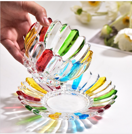 Nama Produk: Piring pencuci mulut mangkuk kaca berjalur berwarna-warni