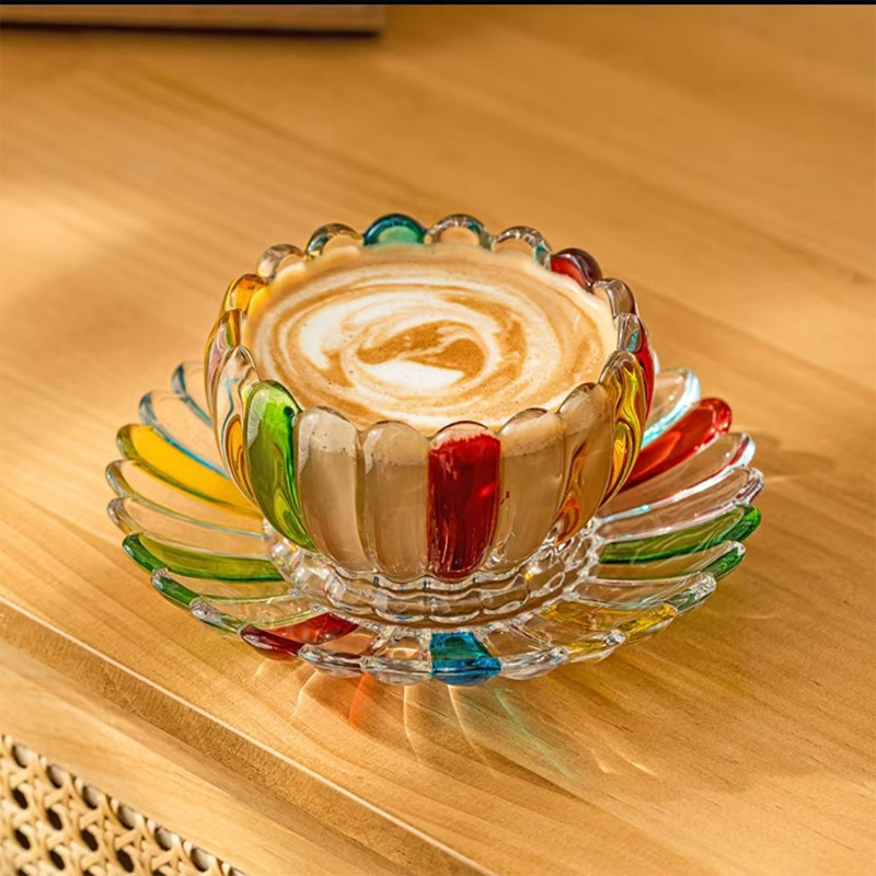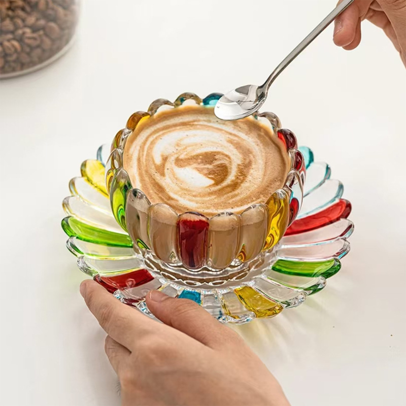 Reka bentuk tekstur bunga tiga dimensi. Kedua-dua cawan dan piring menampilkan tekstur kelopak cembung tiga dimensi yang jelas, manakala mulut lebar meningkatkan estetika keseluruhan dan memberikan permukaan yang tidak licin.