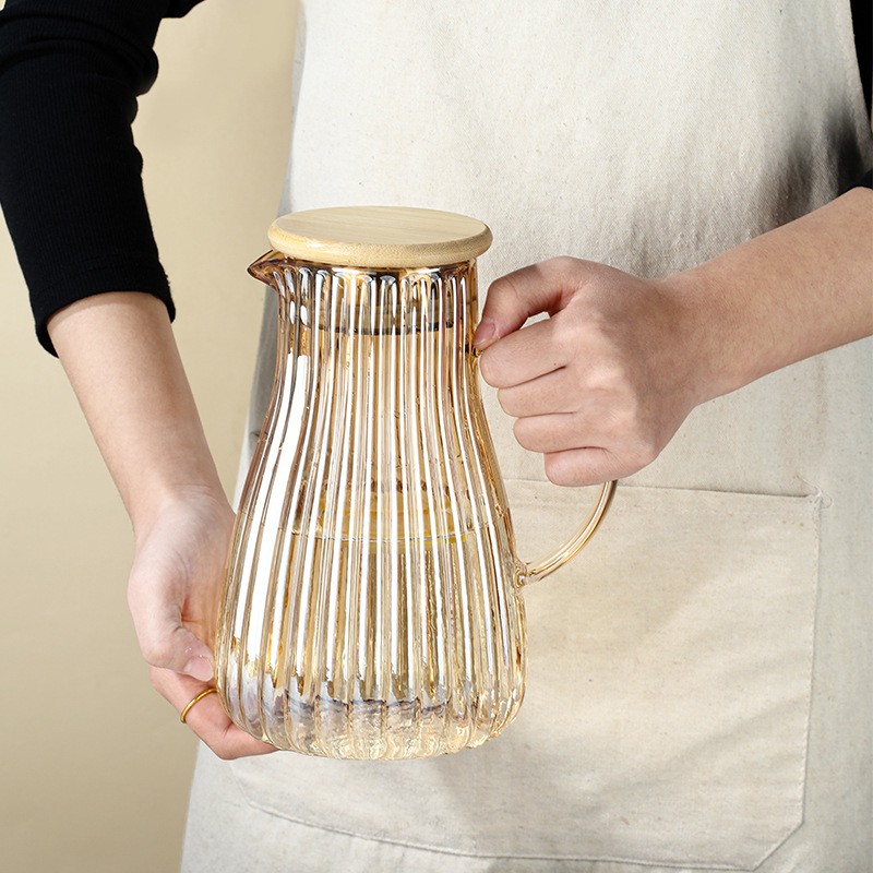 Cerek kaca corak menegak gaya Nordic diperbuat daripada kaca borosilikat berkualiti tinggi, yang tahan panas dan sejuk serta sesuai untuk menyimpan minuman sejuk dan panas. Cerek kaca borosilikat tinggi adalah selamat dari dapur, ketuhar gelombang mikro dan mesin basuh pinggan mangkuk serta bebas BPA dan plumbum. Cerek kaca borosilikat ini direka bentuk dengan penapis keluli tahan karat gred makanan boleh tanggal yang kelihatan kecil tetapi sangat berfungsi untuk menghalang teh dan buah daripada dituangkan. Sesuai untuk membuat minuman buatan sendiri/teh ais/teh buah, bekas kaca dengan penapis ini diperbuat daripada kaca borosilikat berkualiti tinggi yang tahan suhu. Anda boleh meletakkannya di atas dapur pada tetapan rendah untuk memastikan anda sentiasa minum secawan teh panas. Teko kaca lutsinar ini juga boleh digunakan sebagai periuk kaca. Saluran keluar air dilengkapi dengan penapis keluli tahan karat gred makanan boleh tanggal untuk mengelakkan teh dan jus buah daripada tumpah. Anda boleh membuat limau, jus oren, jus buah-buahan dan minuman lain. INTOWALK pengeluar kaca sumber Cina